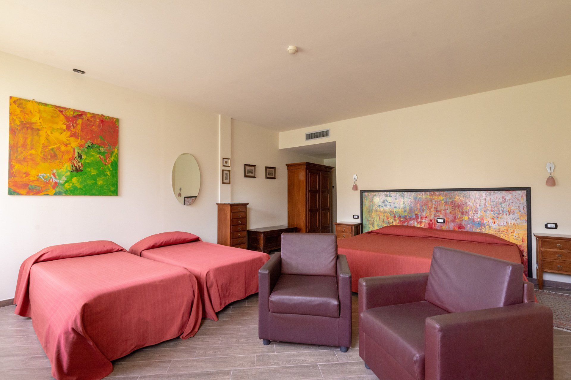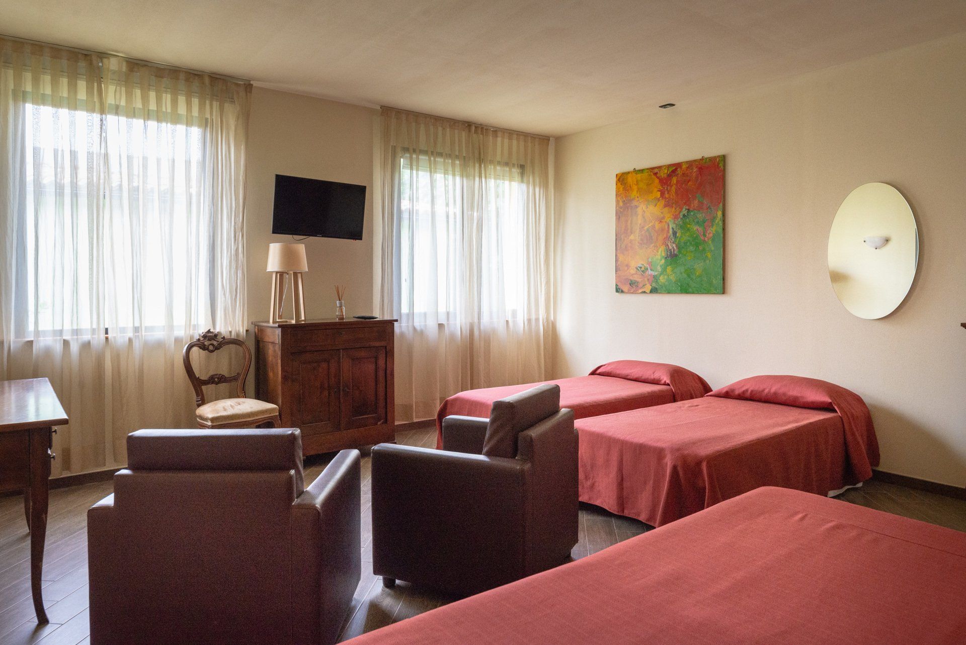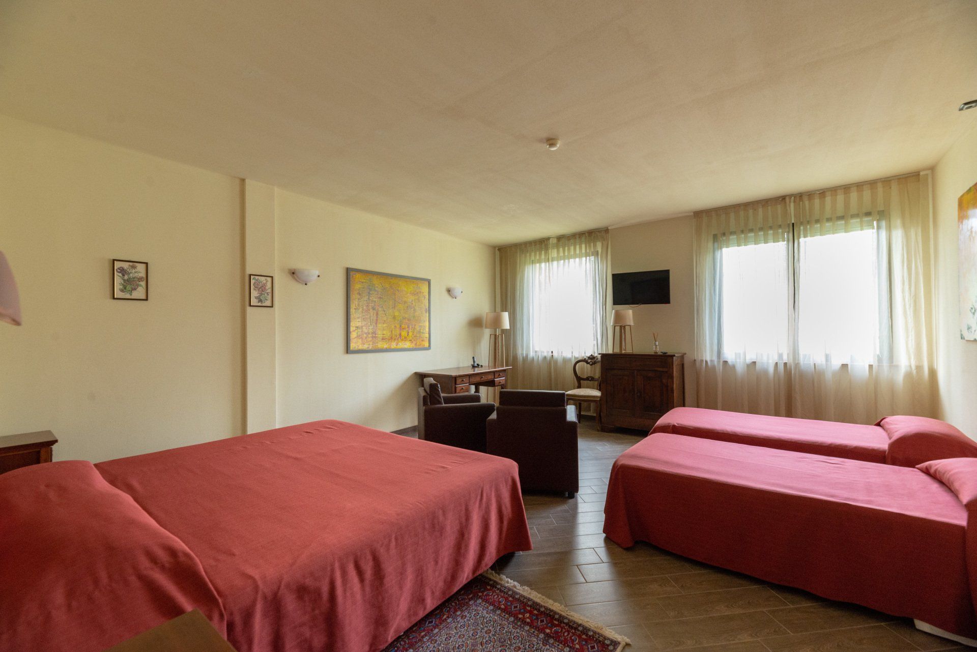 The hotel rooms are very spacious (40 square metres), and can sleep from one to four guests, in single, twin, double or triple rooms. It is ideal for those traveling with family or for pleasure and we can also accommodate for those who are looking for an extended period of stay in Sassuolo (business, work, study etc.).